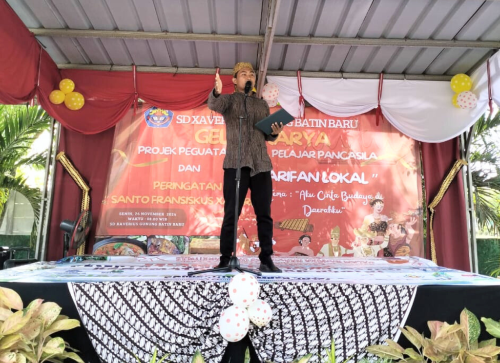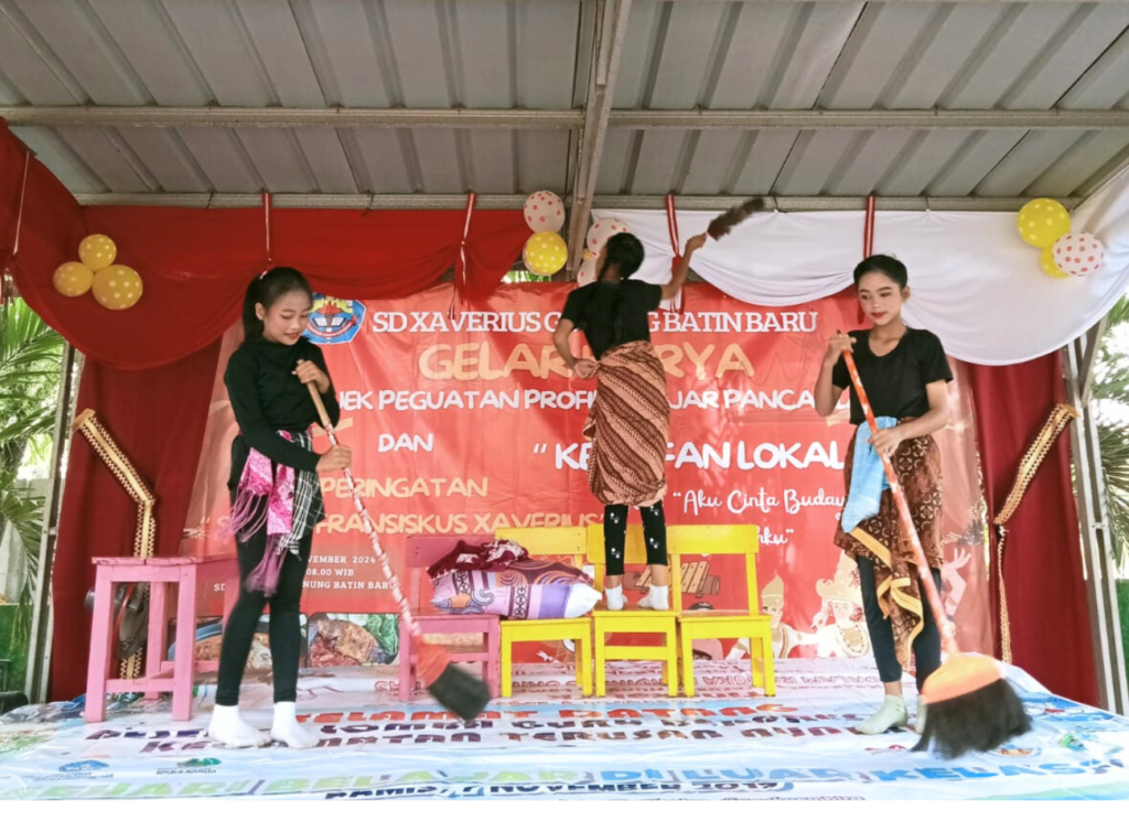 Gunung Batin Baru, 26 November 2024, suasana ceria dan semangat kebersaamaan menyelimuti pagi yang cerah ini. Seluruh peserta didik SD Xaverius Gunung Batin Baru berkumpul di halaman sekolah untuk mengikuti kegiatan Gelar Karya Projek Penguatan Profil Pelajar Pancasila (P5). Dengan mengusung tema “kearifan lokal” yang dipadukan dengan semangat peringatan hari Santo Pelindung Sekolah Fransiskus Xaverius, acara ini menjadi momentum istimewa bagi seluruh peserta didik, guru, dan karyawan.